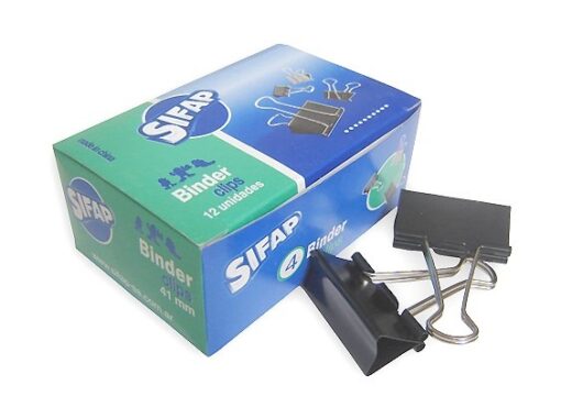 BROCHE APRIETAPAPEL BINDER CLIP SIFAP NEGRO N.4 41MM CAJITA X12 UNIDADES